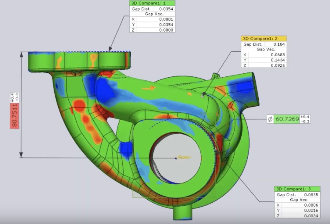 3D inspection is the process of using a 3D scanner, a coordinate measuring machine (CMM) or Photogrammetry to measure the dimensions, geometry, and features of a product or a part. It can compare the scanned data with the original design data or a reference model to check for any deviations or discrepancies. It can also generate reports and documentation that show the results of the inspection.